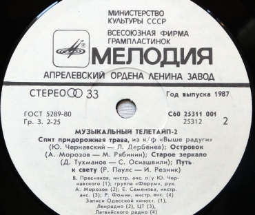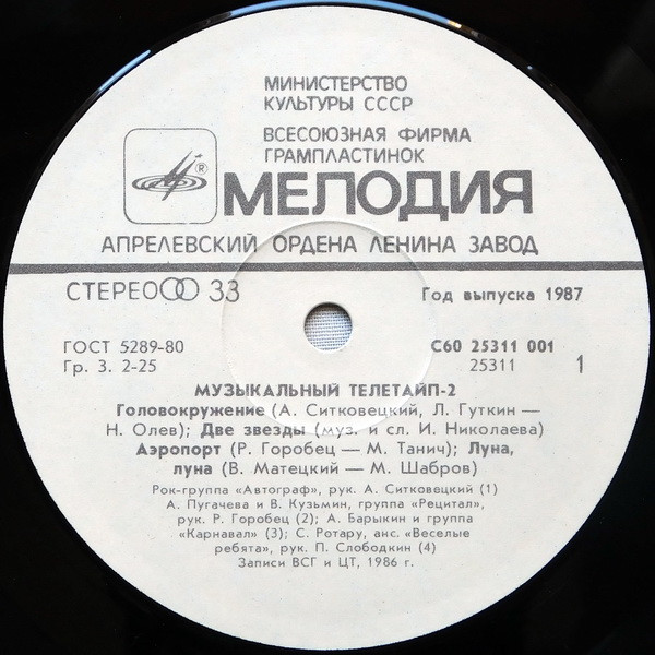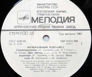Вы здесьГлавная » КУПИТЬ ВИНИЛОВЫЕ ПЛАСТИНКИ » Various (сборник) Все товары » Музыкальный телетайп -2 (Е.Семенова, А, Барыкин, Автограф, А Пугачева, Фомин, В, Пресняков, Ротару, Форум)