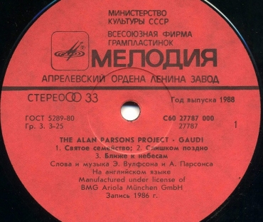 Вы здесьГлавная » КУПИТЬ ВИНИЛОВЫЕ ПЛАСТИНКИ » The Alan Parsons Project все товары » The Alan Parsons Project Гауди