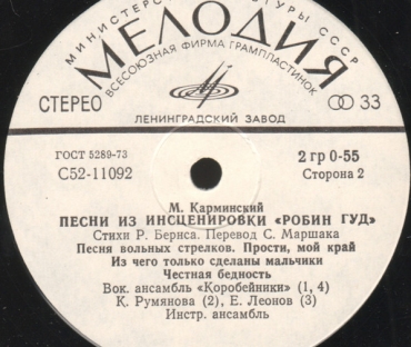 Вы здесьГлавная » КУПИТЬ ВИНИЛОВЫЕ ПЛАСТИНКИ » Песни/Сказки для детей все товары » М. Карминский – Песни Из Инсценировки «Робин Гуд»