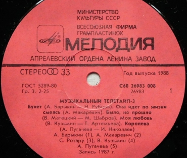 Вы здесьГлавная » КУПИТЬ ВИНИЛОВЫЕ ПЛАСТИНКИ » Various (сборник) Все товары » Музыкальный телетайп (А. Барыкин и Карнавал\ Машина Времени\ А. Серов\ А. Пугачева\ С. Ротару\ В. Кузьмин)