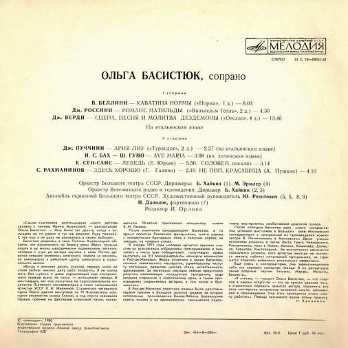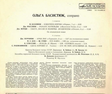 Вы здесьГлавная » КУПИТЬ ВИНИЛОВЫЕ ПЛАСТИНКИ » Ольга Басистюк сопрано - Bellini /Rossini Puccini / Рахманинов / Ave Maria