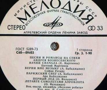 Вы здесьГлавная » КУПИТЬ ВИНИЛОВЫЕ ПЛАСТИНКИ » Various (сборник) Все товары » Песни Андрея Вознесенского - М.Таривердиев / Веселые Ребята /А. Бабаджанян /И. Христова /Karel Gott / С.Ротару / Е. Мартынов
