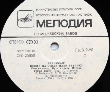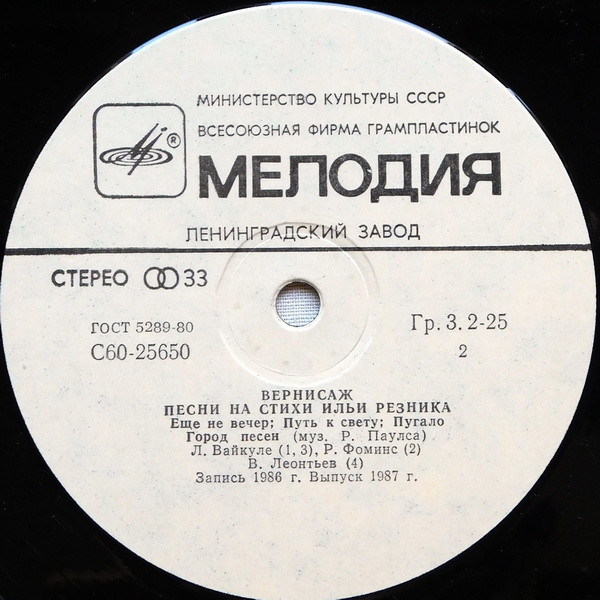 Песни на стихи Игоря Резника - Л.Вайкуле\А.Пугачева\ М.Зивере \ В. Леонтьев