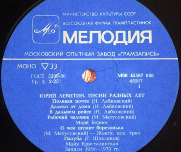 Вы здесьГлавная » КУПИТЬ ВИНИЛОВЫЕ ПЛАСТИНКИ » Алла Пугачева все товары » Сборник - Марк Бернес/ Майя Кристалинская / Анна Тихонова / Алла Пугачева / Иосиф Козон