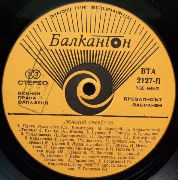 Вы здесьГлавная » КУПИТЬ ВИНИЛОВЫЕ ПЛАСТИНКИ » Various (сборник) Все товары » Various – Златният Орфей '77