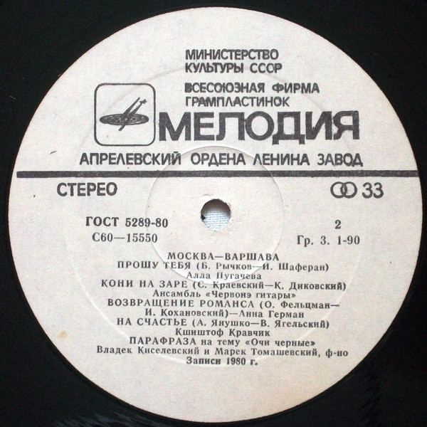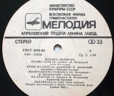 Вы здесьГлавная » КУПИТЬ ВИНИЛОВЫЕ ПЛАСТИНКИ » Various (сборник) Все товары » Варшава-Москва -Эва Дэмарчик / Анна Герман / Червонэ Гитары / Кшиштов Кравчик / А.Пугачева / Верасы / Марыля Родович
